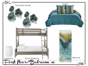 “A coastal contemporary model home with textured finishes that bring the outside in… with pops of bold color in art and pillows”